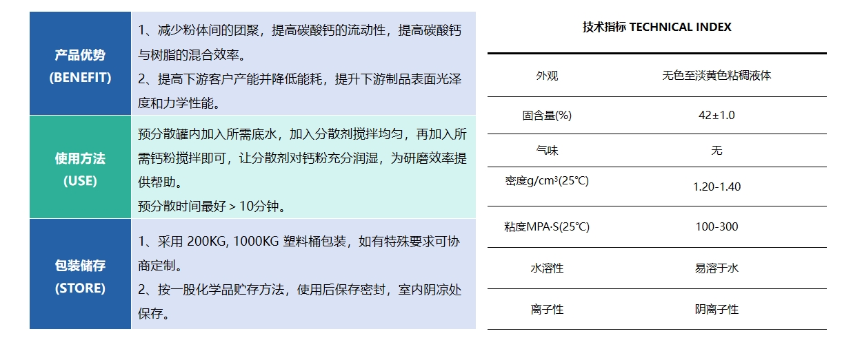 HQ-S931M 分散劑,極易溶于水。對各級重質碳酸鈣和高嶺土顏料濕法研磨 更能顯示其優異的物理性。研磨后膜料粘度低及穩定性好。